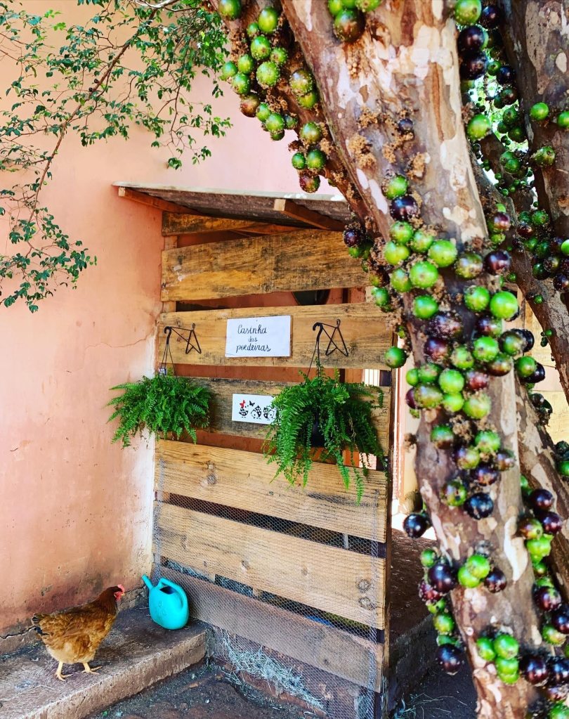No nosso pomar e horta atualmente crescem berinjela, abobrinha-menina, melão, mamão, manga, gabiroba, jabuticaba, café, carambola, banana, mirtilo, maracujá, tomate, atemoia, limão, laranja, goiaba, pitanga e acerola, entre outras flores e ervas. Cada espécie floresce de acordo com a estação apropriada, livre de inseticidas e pesticidas de qualquer tipo, sob qualquer circunstância. The Tiniest Farm também é o lar de um angico vermelho e uma árvore madura de grumixama, um fruto típico brasileiro em série risco de extinção.